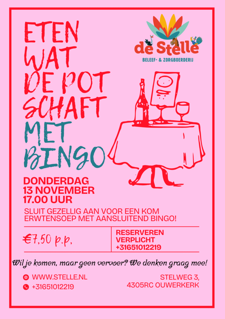 Het ligt aan het seizoen, maar wanneer onze frambozen, bessen en kersen rijp zijn, kan fruit plukken toegevoegd worden als activiteit. Ook is de combinatie met een wandelpony (pony huren voor 30minuten om te poetsen, mee te wandelen en op te zitten) ook een optie.